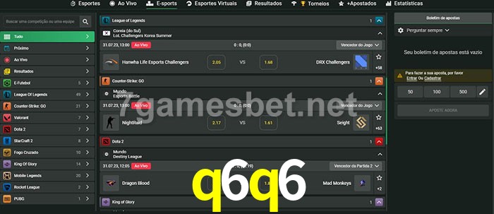 O q6q6 oferece uma grande seleção de opções de apostas em e-sports com probabilidades competitivas